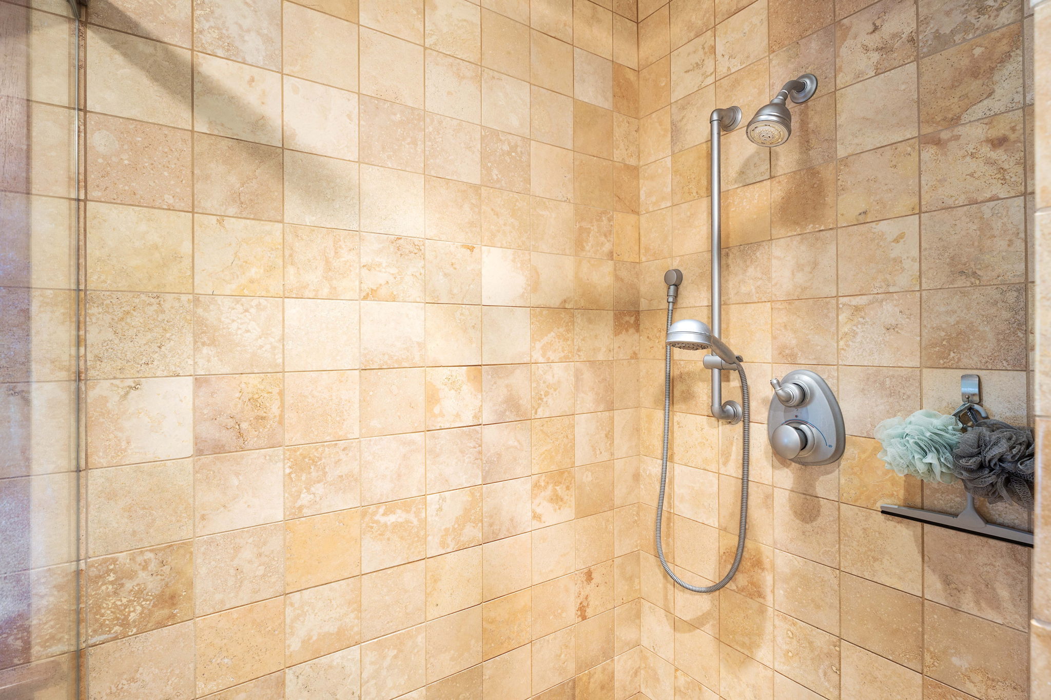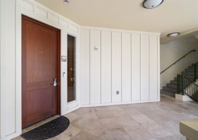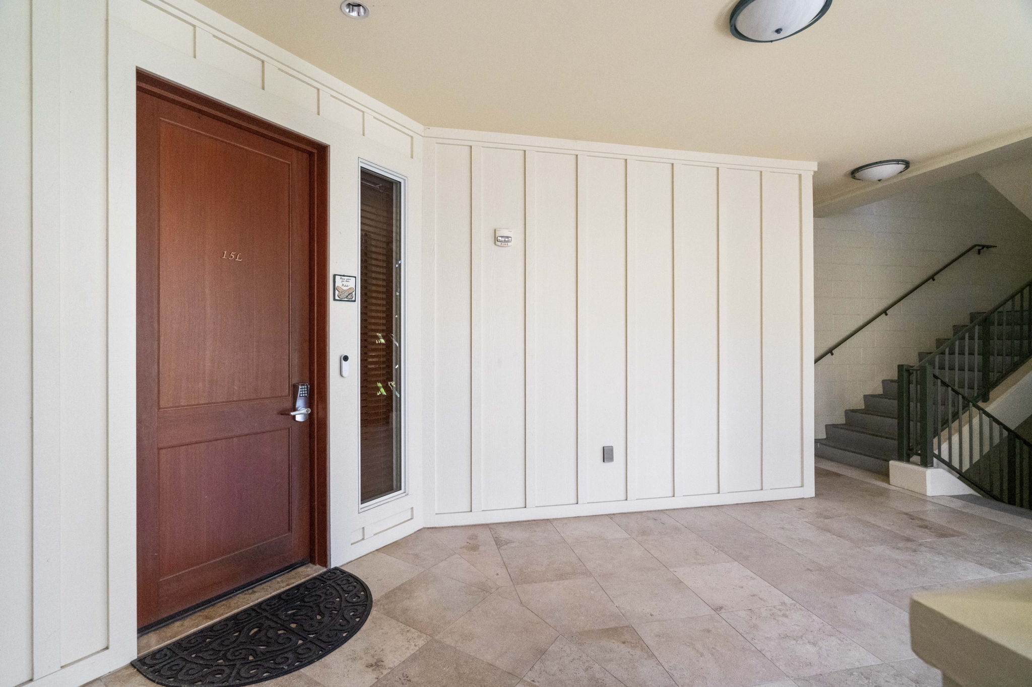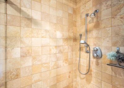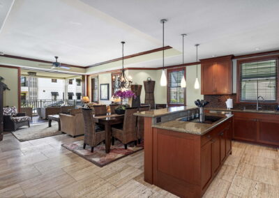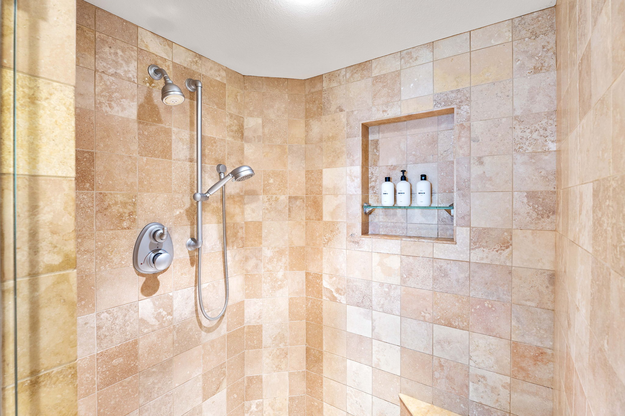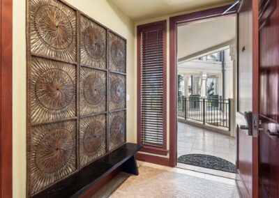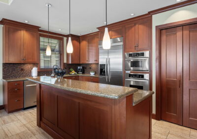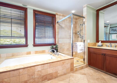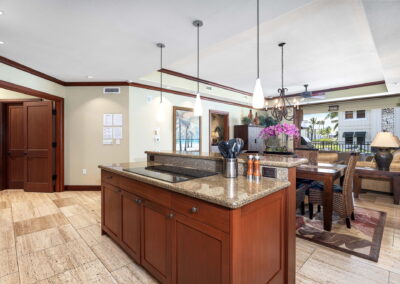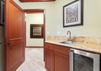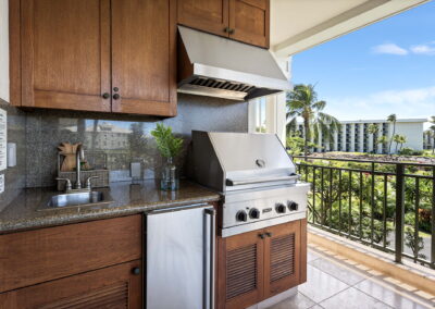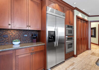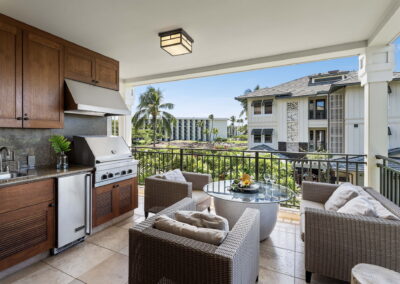 Inside, stone flooring runs throughout—no carpet—creating a clean, modern look that is both elegant and easy to maintain. Wide pocket doors open the living area to the large lanai, where a built-in Viking grill invites seamless indoor-outdoor living and effortless entertaining. Each master suite provides its own retreat, with generous storage and luxurious finishes.