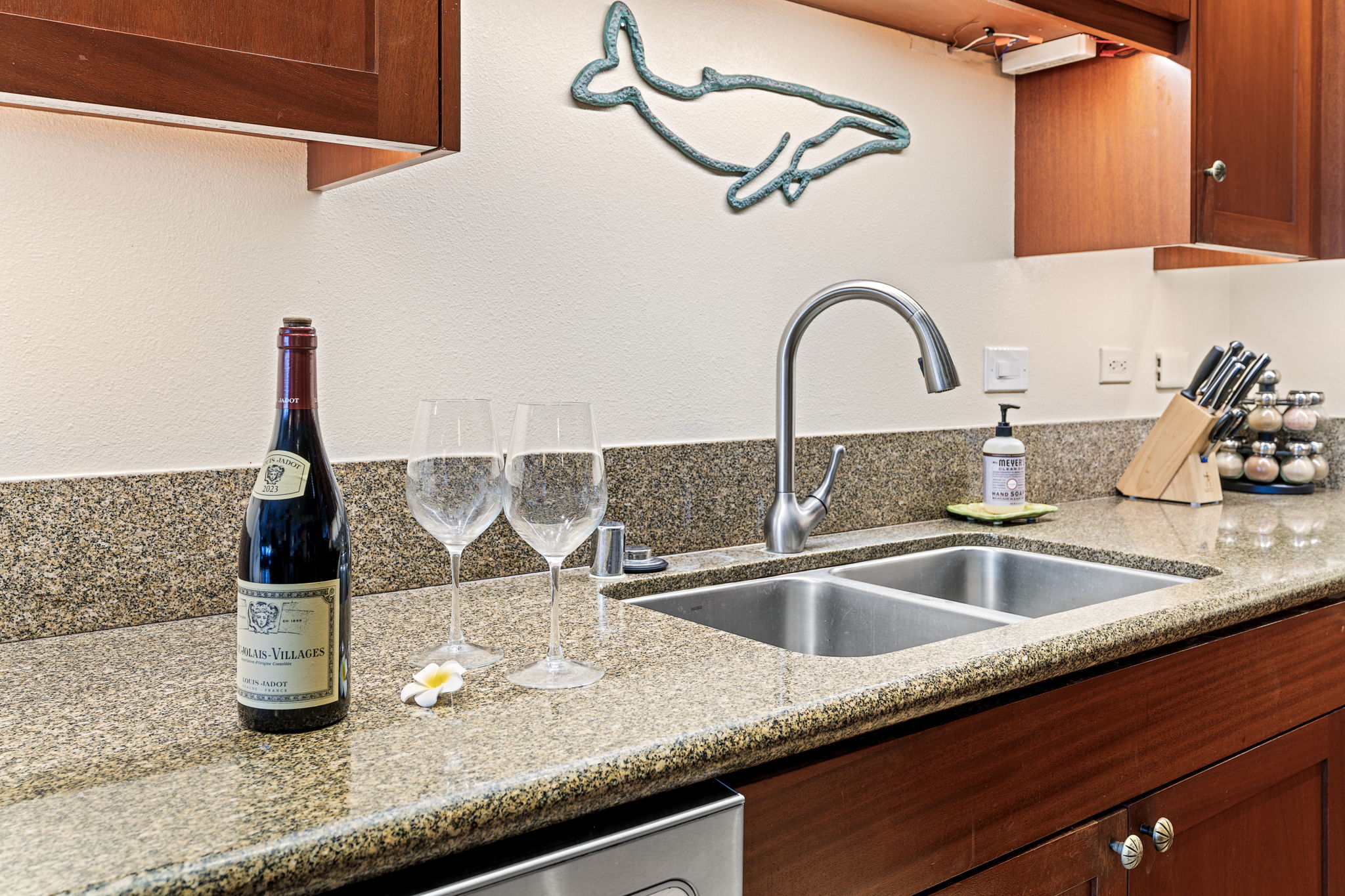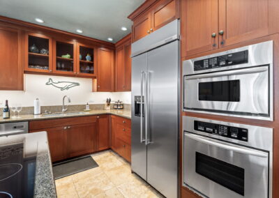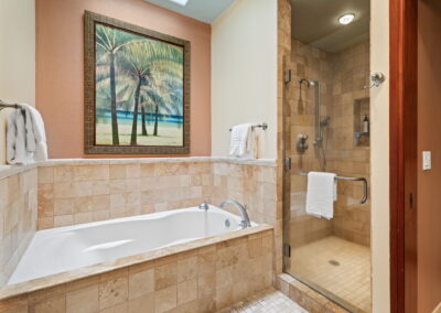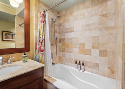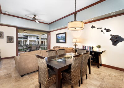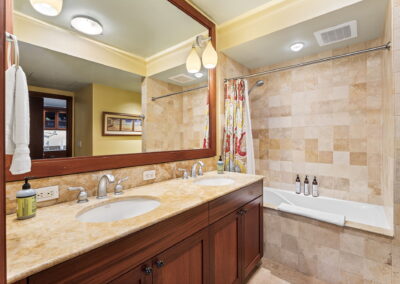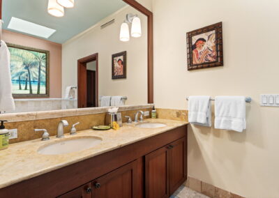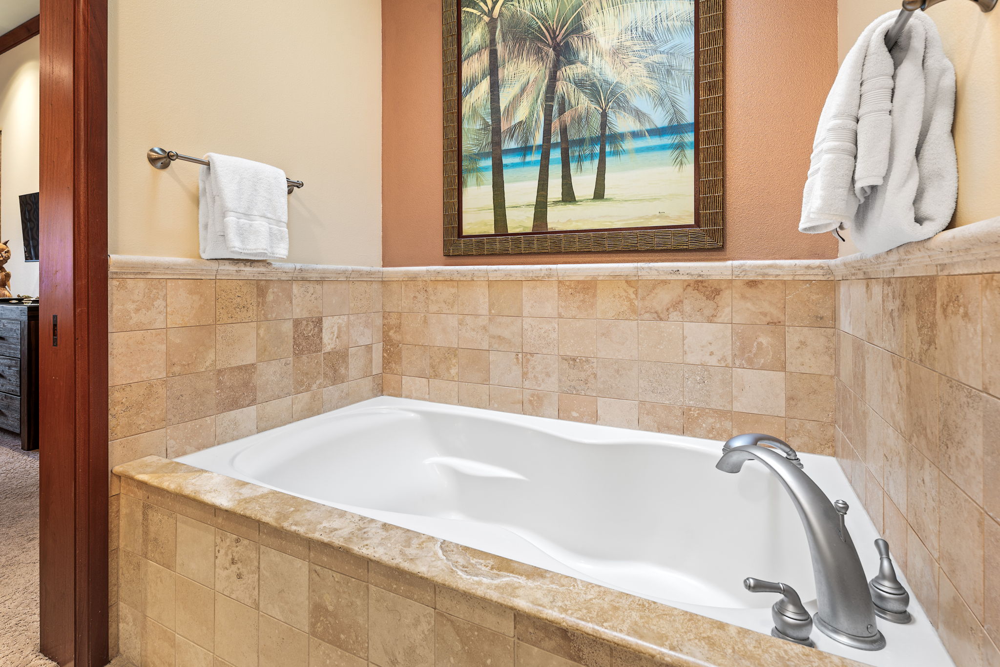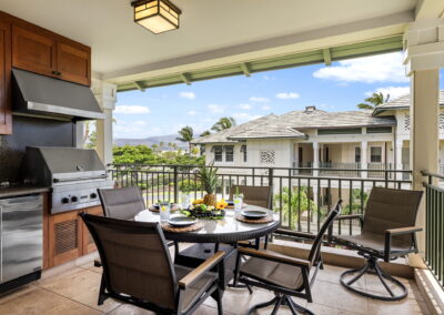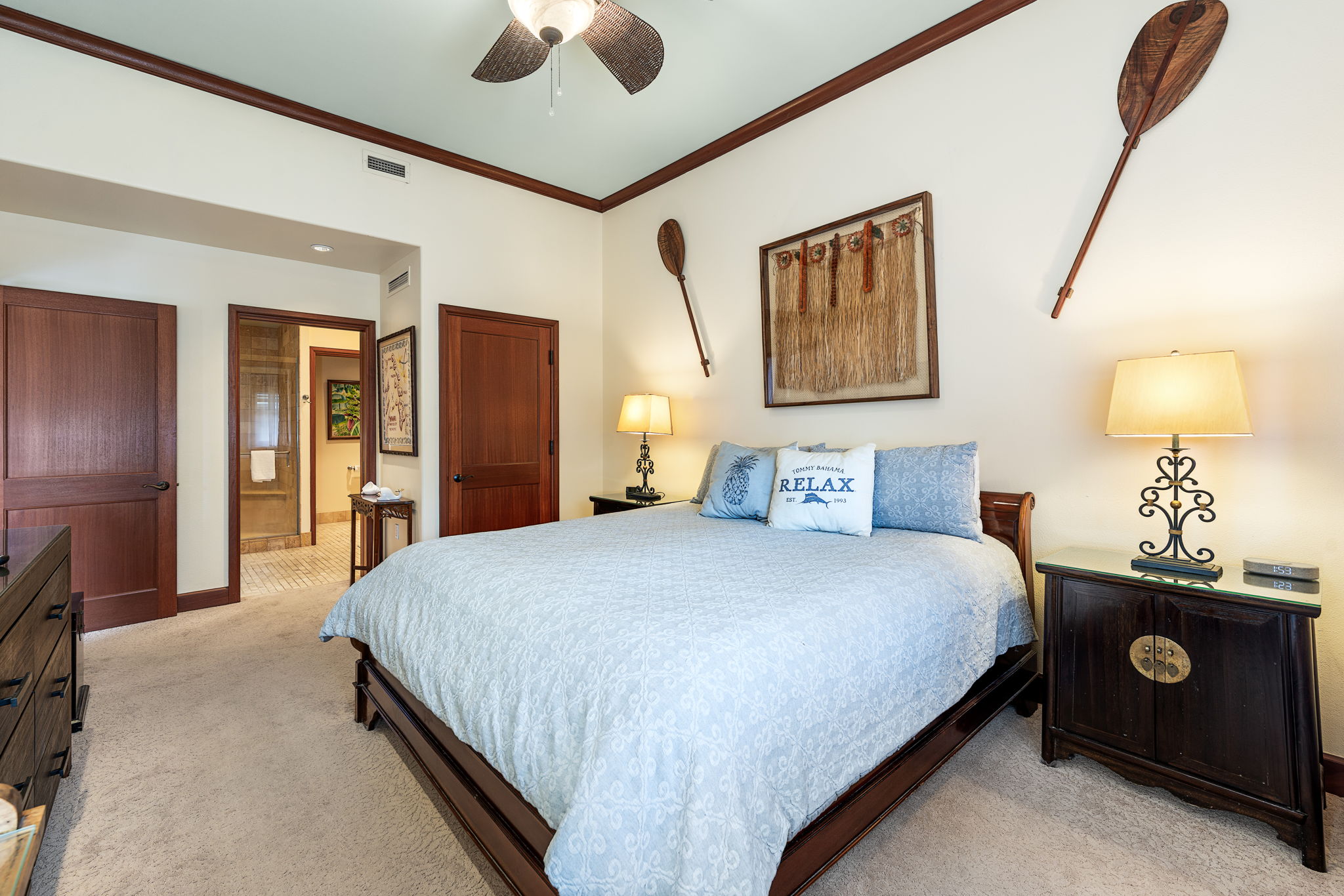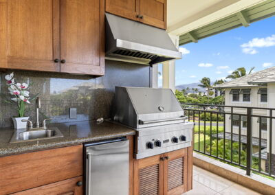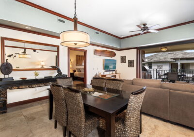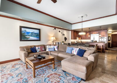 Experience resort living at its finest in this beautifully appointed 2-bedroom, 2-bathroom penthouse condo at Kolea, Waikoloa Beach Resort’s only beachfront community. This top-floor residence offers 1,270 square feet of refined indoor living, enhanced by 12-foot pocket doors that open to a spacious lanai featuring a Viking grill and wet bar—perfect for outdoor dining and entertaining in the island breeze. Rich African mahogany trim and solid doors add warmth and sophistication throughout, while high ceilings and natural light create an inviting, open atmosphere. The well-designed floor plan offers privacy between bedrooms and effortless flow through the main living areas. Ideally located just steps from the white sands of ‘Anaeho‘omalu Bay, this penthouse provides access to all the premier amenities of Waikoloa Beach Resort, including world-class dining, shopping, golf, and ocean activities.